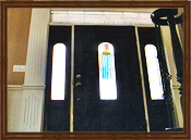as wide legs with picture frames on fluted columns. These
